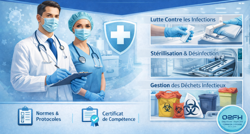 La prévention des infections associées aux soins est primordiale pour les professionnels de santé. Pour cela leur sensibilisation et leur formation doivent se faire de façon continue. L’organisme Français de Formation en Hygiène (O2FH) propose des formations en hygiène hospitalière et infections nosocomiales qui s’adressent à l’ensemble des professionnels qui travaillent dans les établissements de santé, médico-sociaux, Ehpad, …